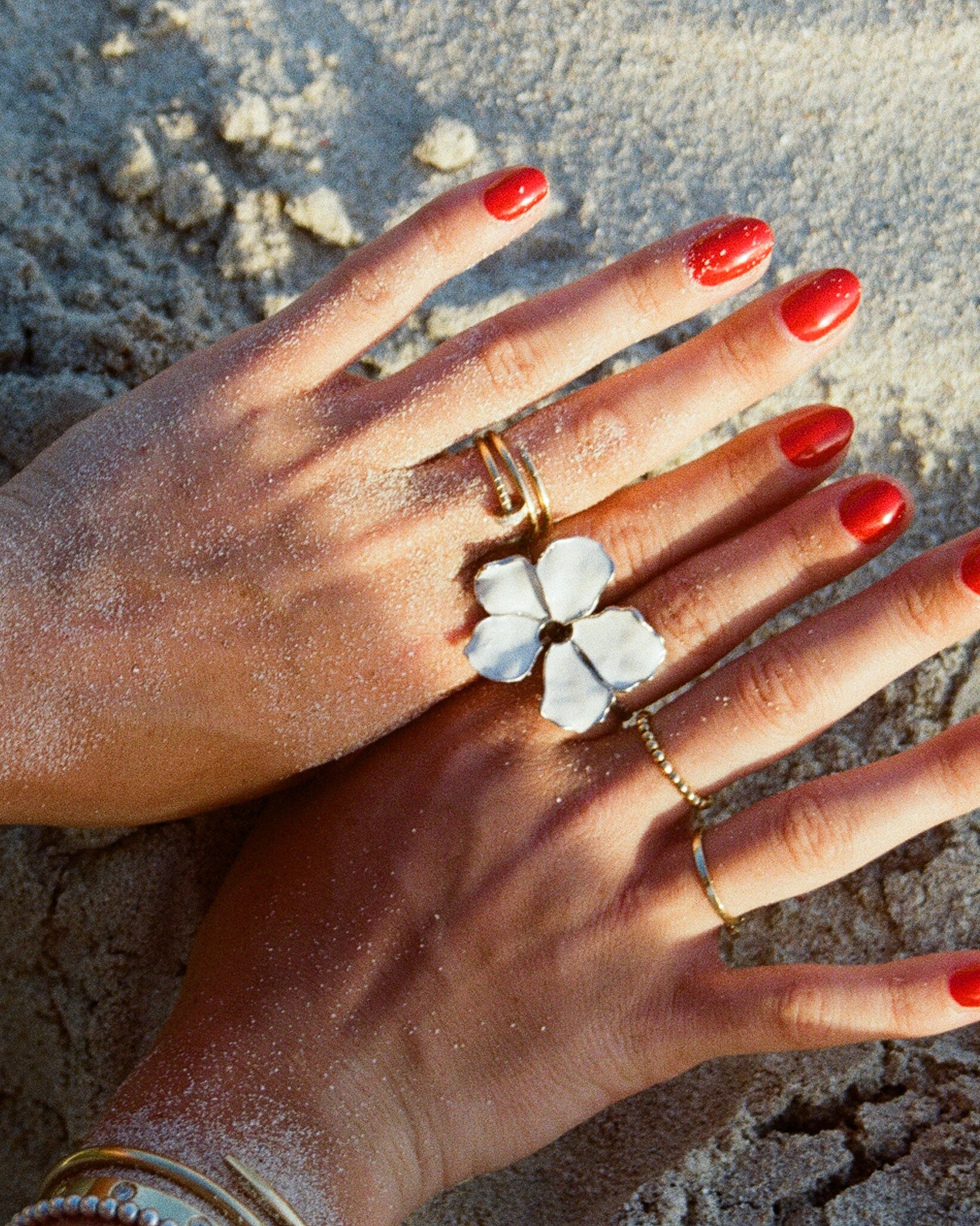 Inspired by the White Hibiscus, a flower long associated with femininity, love and beauty. The Rose of Sharon Ring is an ode to the soft, romantic power of the Divine Feminine.
