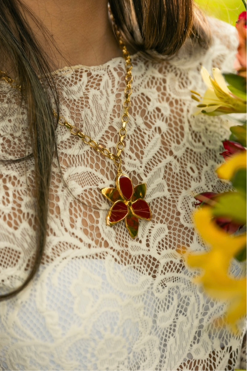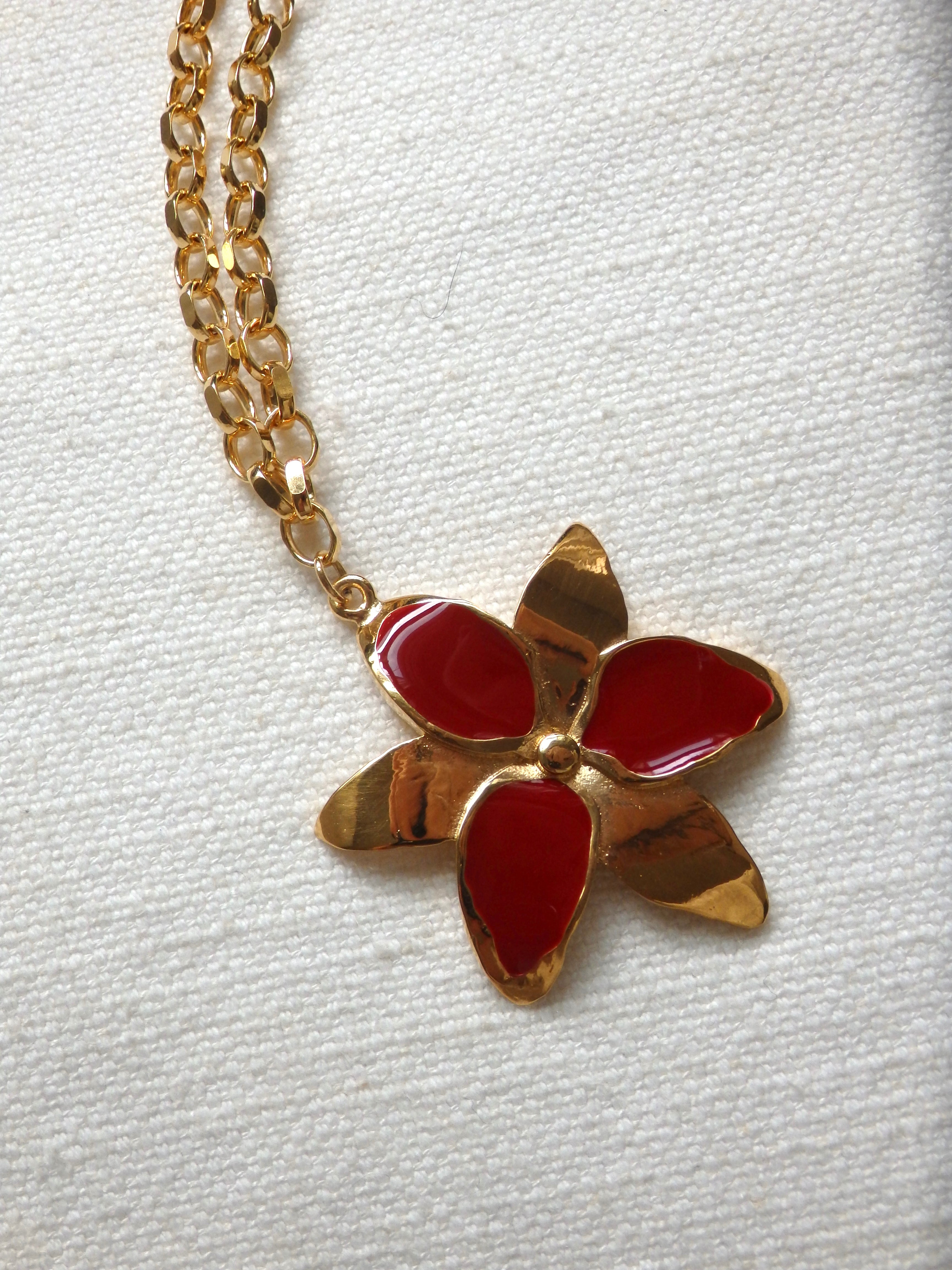 A beautiful large lily pendant with enamel filled petals. Carefully crafted in the UK in small batches and limited runs to maintain rarity and exclusivity. Available in French Vanilla, Candy, Ruby and Sky.